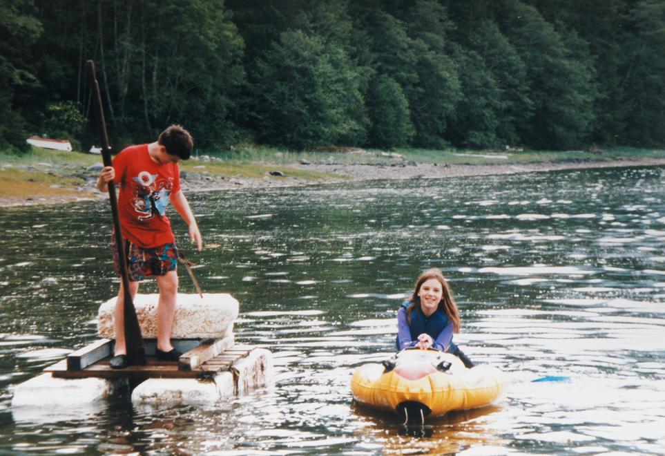 Early efforts at boat building. I think the foam block on top was the lifeboat… Megan wisely went with the inflatable torpedo thing.