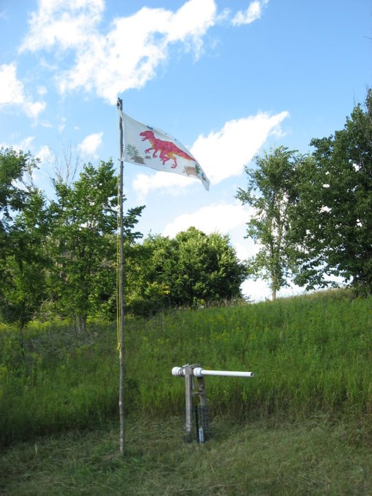 As some back-story, this is out at a friend’s property in rural Wisconsin. We started clearing some camping and bonfire spots last year, and made a “town square” with a flagpole (Rachael made the awesome flag!). The cannon got placed in the town square as a ceremonial reminder of something-or-other (or just to keep it from cluttering up the yard at home).