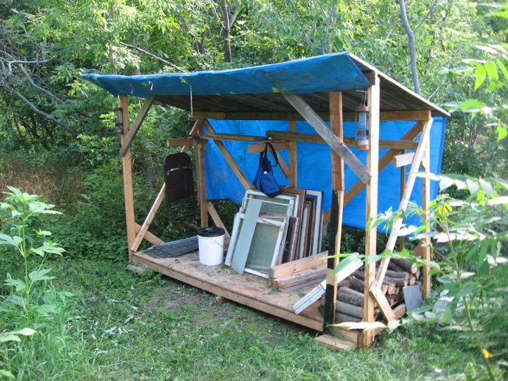 The smaller blue blob is also my doing, it’s a woodshed with a blue tarp roof (I meant to roof it with tarpaper shingles but got lazy, and another friend was already roofing his nearby shed with tarps, so we went the redneck option all around).