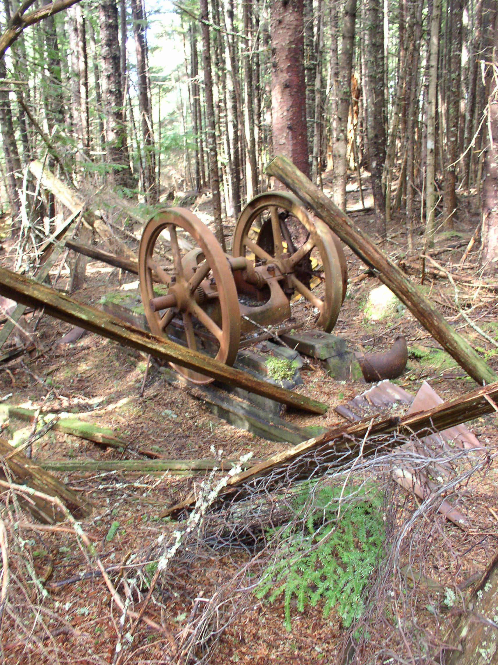 Here is an early low-horsepower gas engine in the woods near the cannery: