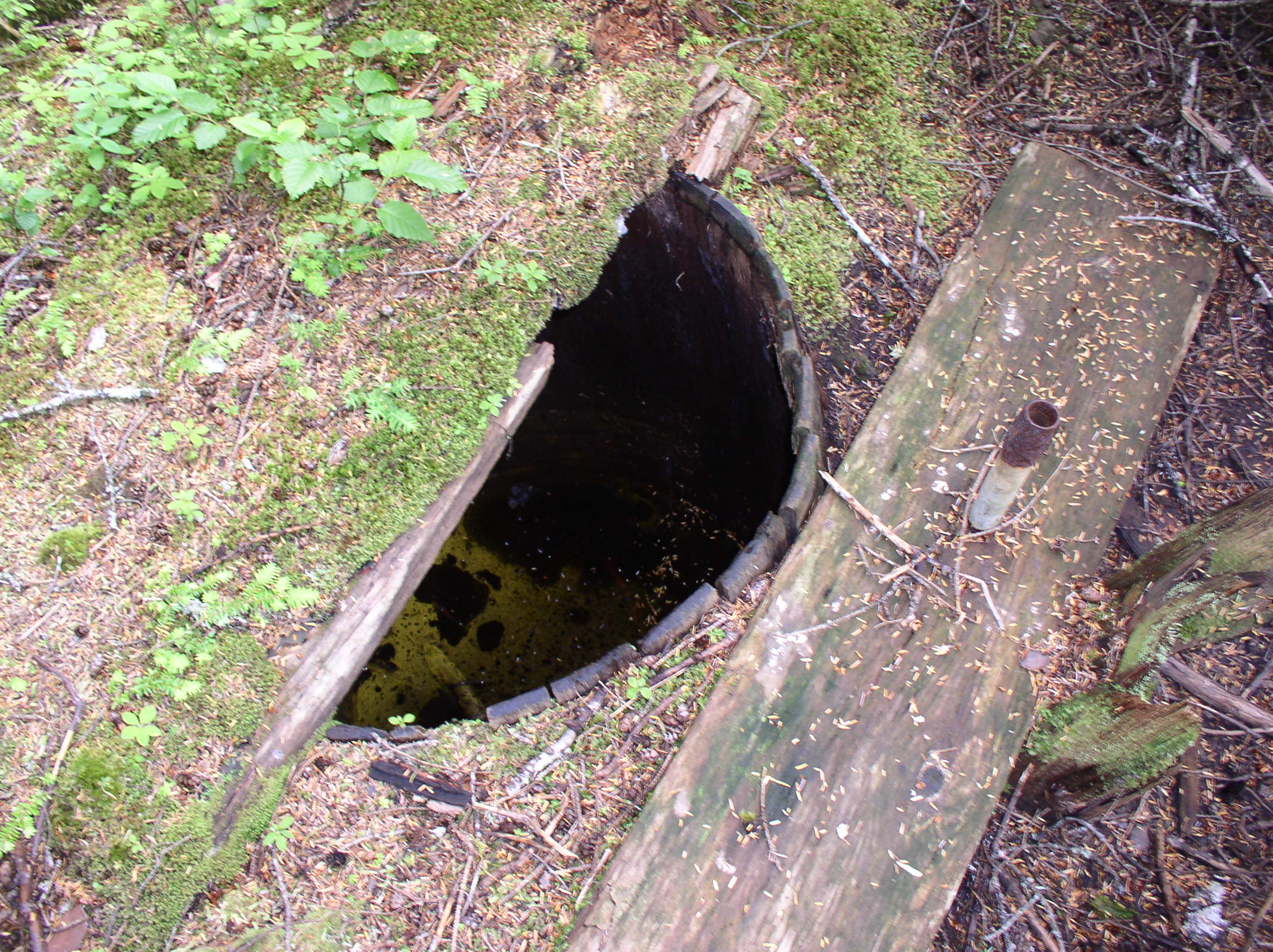 A smaller cistern (basically a buried wooden barrel). In swampy muskeg these could be (and still are) used as collection points and filters, just bury a drum with some holes in it, and run a pipe out: