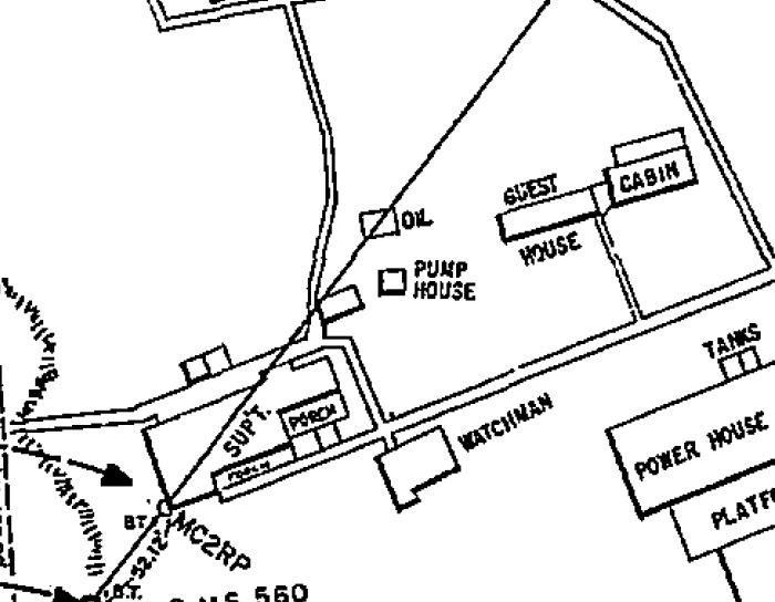 The tank is labeled as “Pump House” on the 1964 map. It probably had a pump to raise water into the tank.