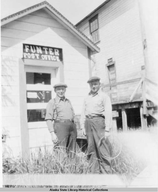 This history of postmasters at Funter is somewhat patchy, and seems to include several people who resigned or left suddenly, leaving other residents to fill in until being officially recognized by the USPS. A list of Postmasters with their start dates is below, based on various government and journal records as well as Melvin Ricks’ Alaska’s Postmasters and Postoffices; 1867-1963.