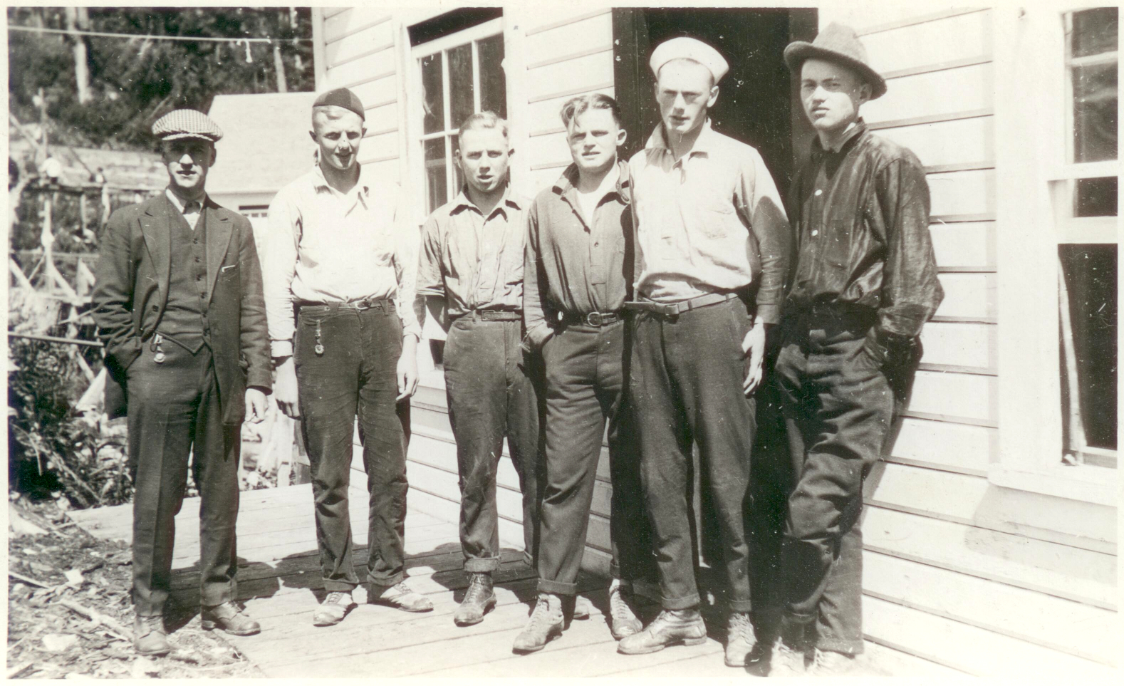 The above photo was likely taken soon after arrival at Funter Bay. The boys are wearing outfits more appropriate for school than for cannery work. One boy on the left has a Ballard HS letter jacket.