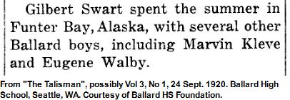 After graduation several of these boys attended the University of Washington, including Harold Hendrickson, Clarence Hawley, and Gilbert Swart. Hawley and Swart both went into chemical engineering. Hendrickson seems to have followed the relatively new field of air conditioning, writing several papers on the subject. He is listed in the 1940 census as an Air Conditioning Engineer in California.