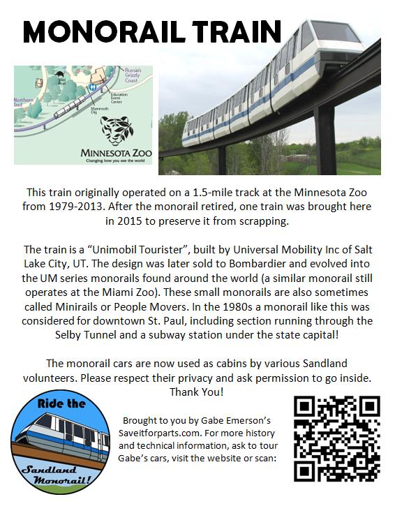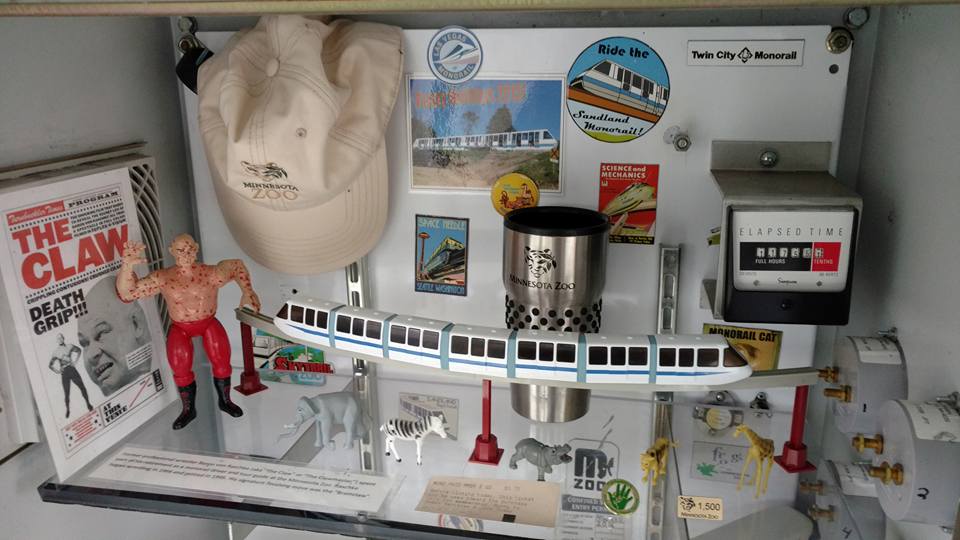 The wall displays document monorail tech, MN zoo history, and other monorail-related tidbits.