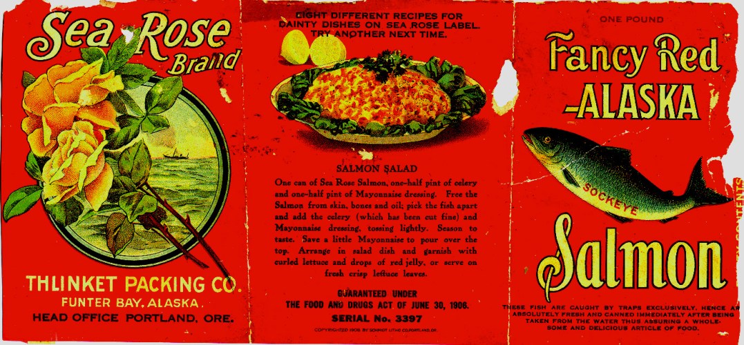 I’ve previously posted other examples of Thlinket Packing Co labels, including “Buster” (Pink), “Tepee” (Coho), and “Sea Rose” (Sockeye). Some of these brands may have changed through the years, as I have also seen Tepee advertised as “standard-grade Sockeye”.