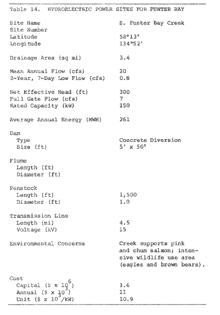This proposal was never fully fleshed out, and included a lot of wild assumptions. For example, the project assumed that Funter Bay’s population would grow from an average of 14 year-round residents in 1979 to 17 in 2000 and 23 in 2030 (actual year-round population was around 8-10 in the year 2000 and is around 3-5 as of 2020).