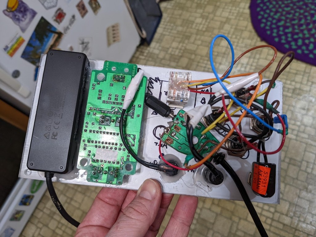 The system is fairly modular and expandable, with most major components simply stuck in with velcro tape. If I want to swap modules for a different experiment, I can just pop them out and replace with something else. Most of the ports and controls are exposed in two custom-made panels. A friend asked if I were getting these laser cut… nope, just plexiglass on the table saw, print the layout on a vinyl sticker, and slap em together!