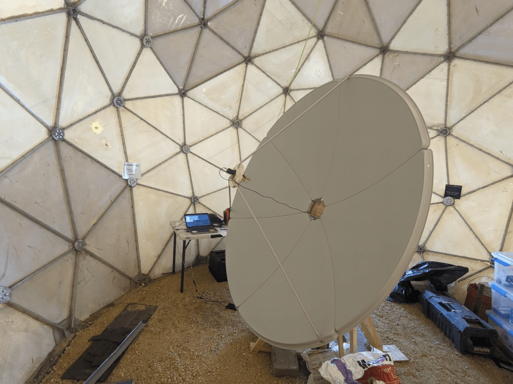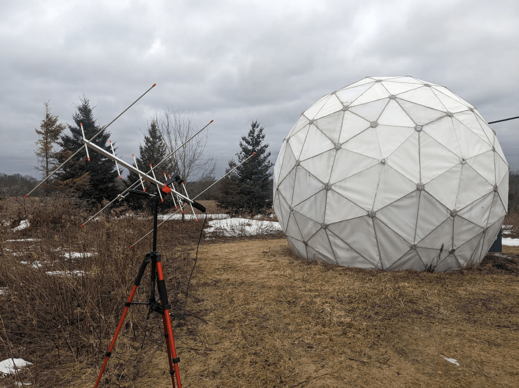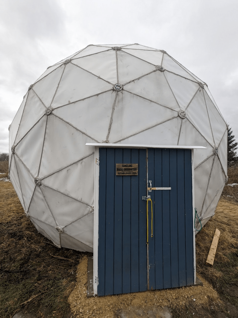 Other projects in 2025 involved finishing the doorway for the dome, so now we can close out wind, rain, and larger wildlife. This took a few tries, people kept leaving the door open for the wind to damage it. The dome is really nice once it’s all closed up, even on a cold February day it’s a nice protected work space! And not having to worry about wind pushing the dish around is nice as well.