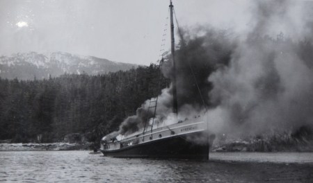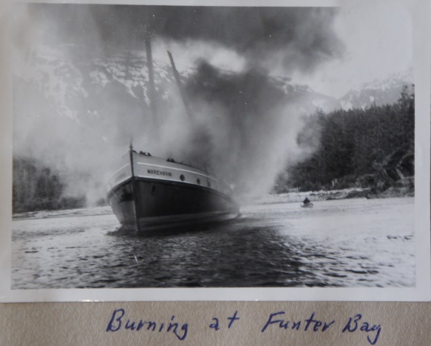 The Juneau-Douglas City Museum has a number of items from Funter Bay, including a gGrape soft drink bottle, a soda water bottle, a Pelton wheel part, and a small motor. They also have a number of Funter Bay documents, including cannery and saltery applications, a canned salmon label I’ve previously mentioned, and various invoices and receipts for things like dynamite, transportation, and jury duty.