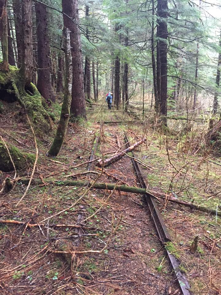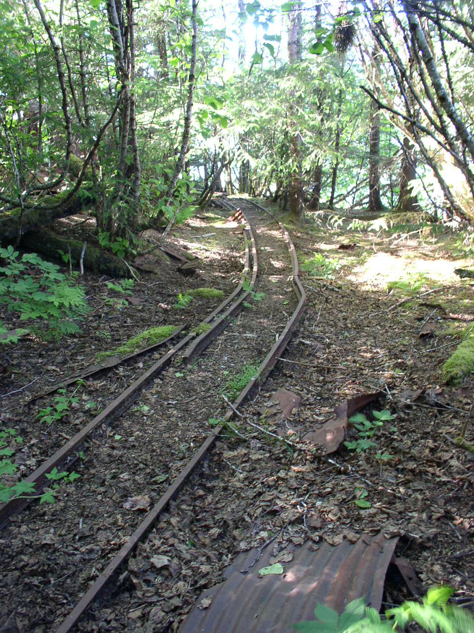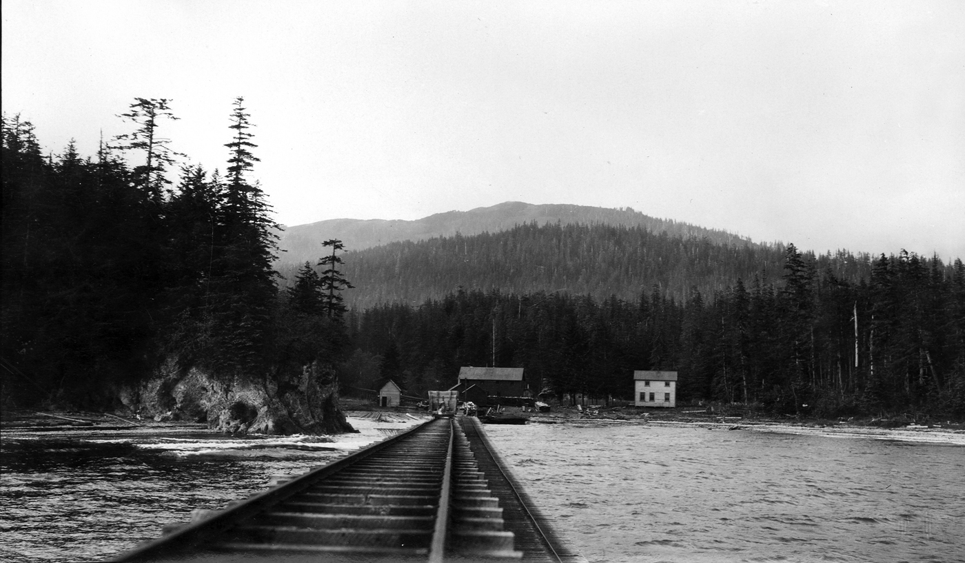 Tracks ran across Payne Island, West of Kake, for a fox farm owned by Judge Payne (his first name was apparently “Judge”). This appears to have been a large operation, active in the 1930s. The remains of several small rail cars can still be found on the island. The tramway was likely similar to that on Sail or Storm island and used to haul fish and other supplies between the beach and the fox pens.