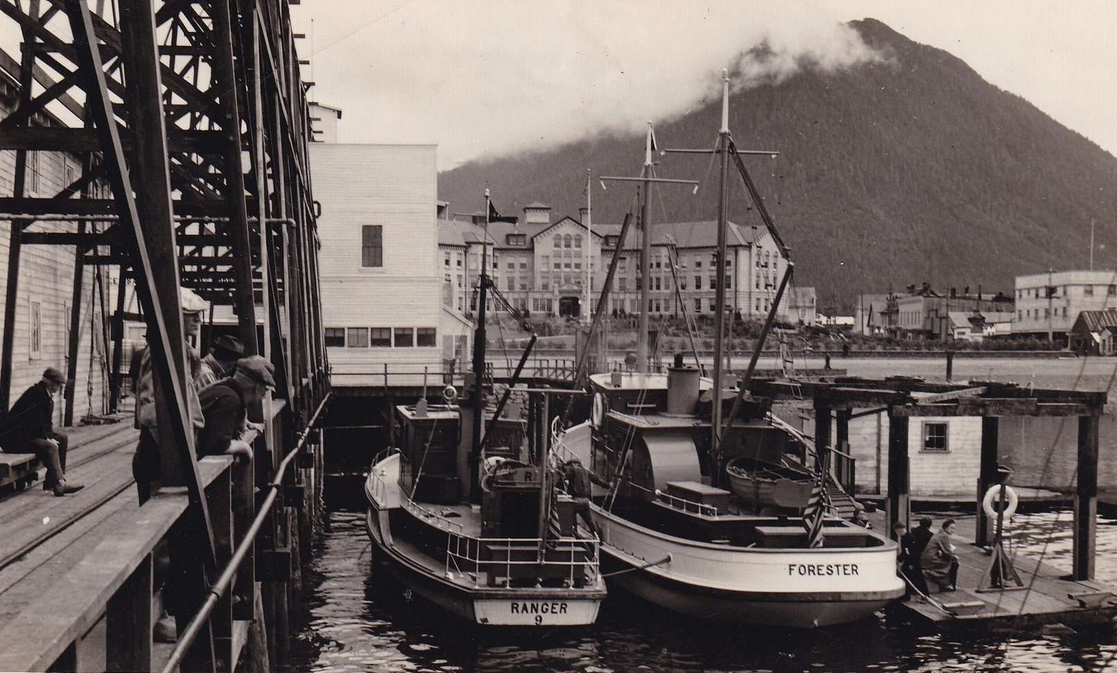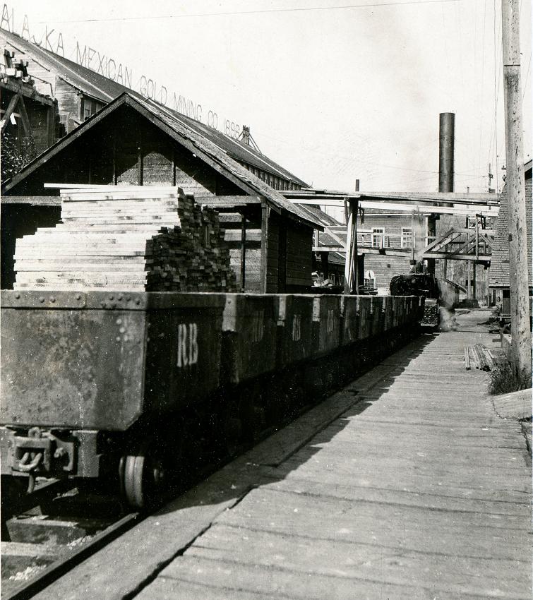 The caption only says “4 men and a locomotive” but it was included in my search for “Douglas Alaska” and that collection also has some definite Douglas and Treadwell photos included along with it. I don’t recognize the background building, but it still could be Treadwell, perhaps out on the main steamship wharf. What do you think? Rich Mattson