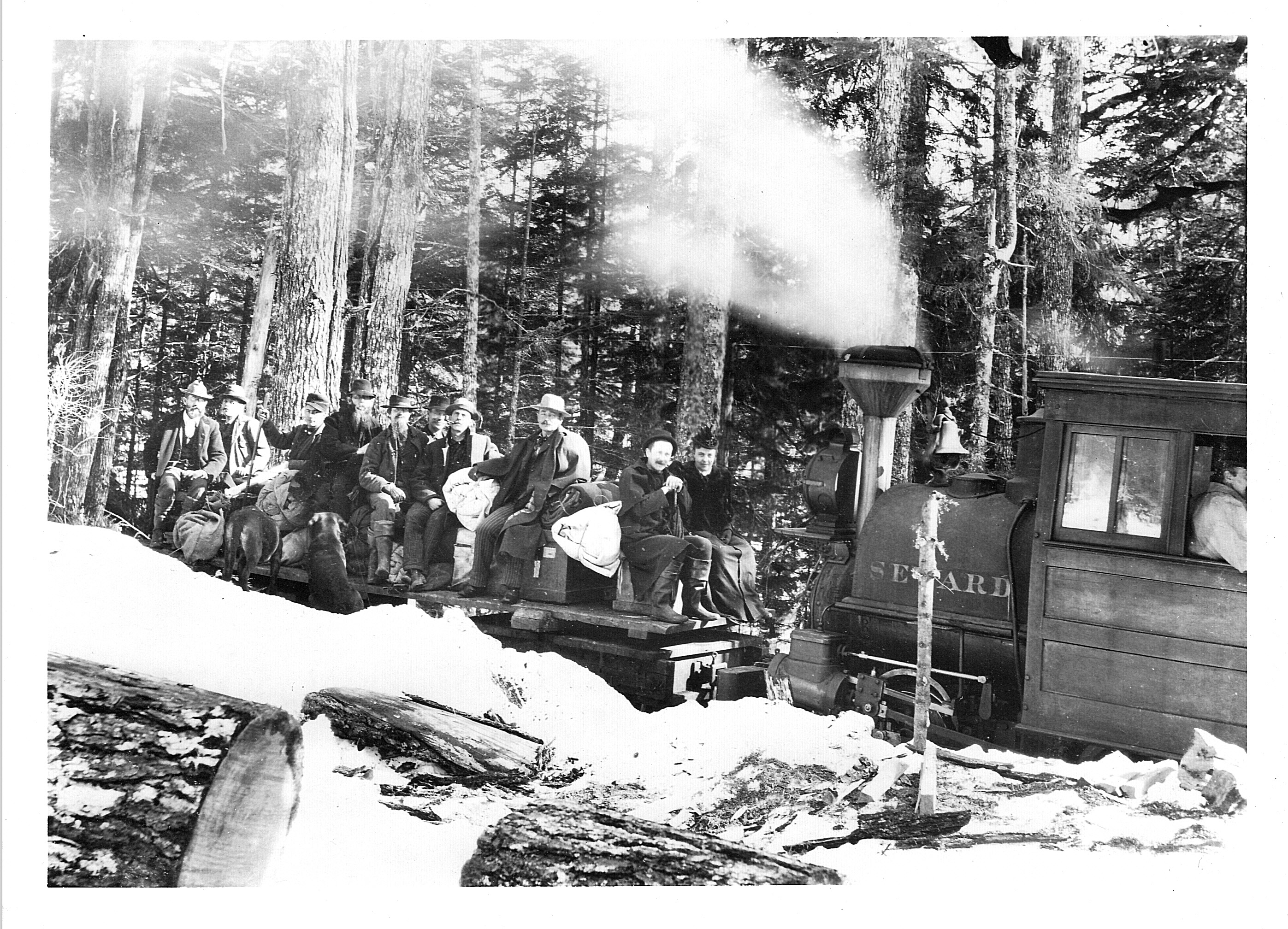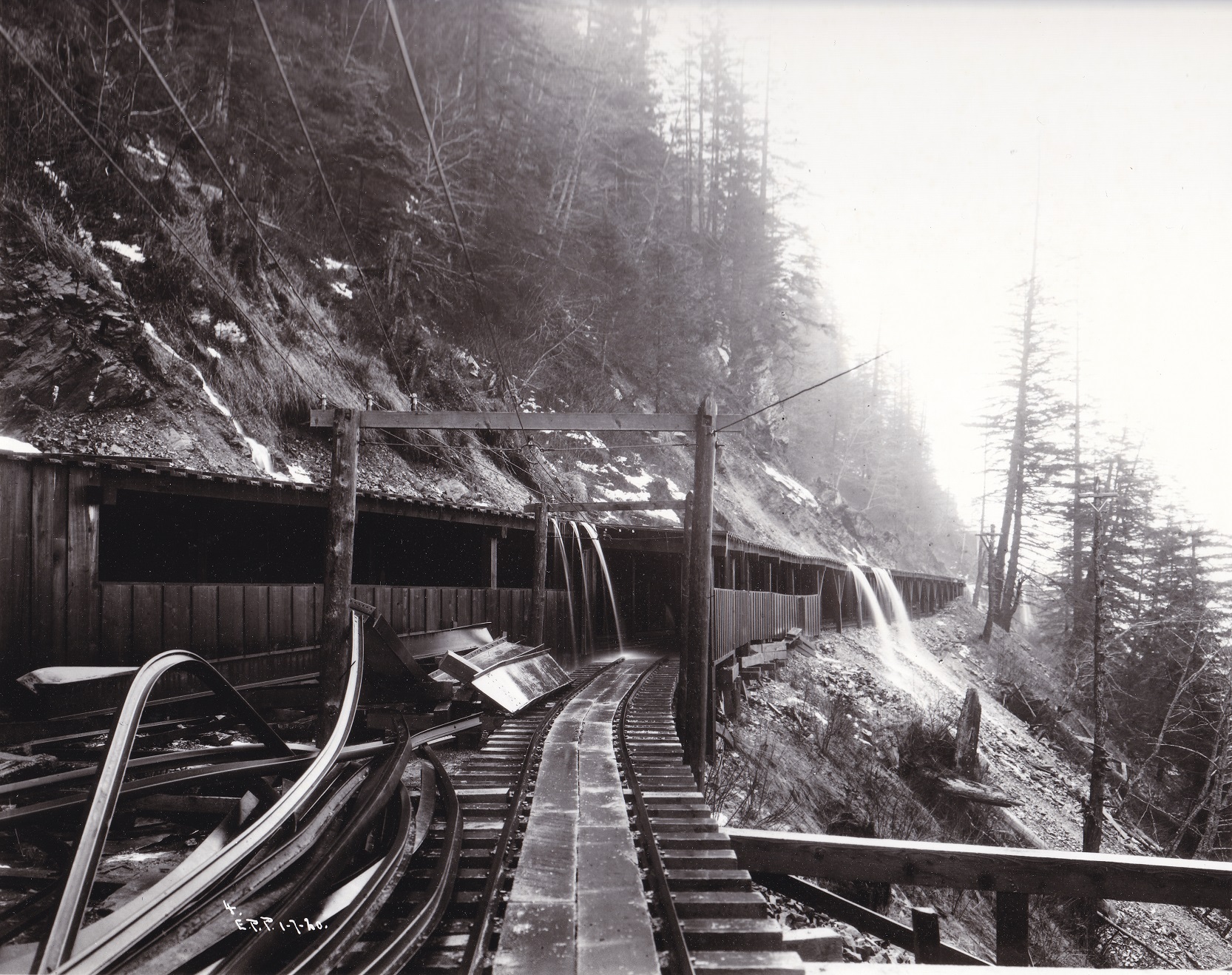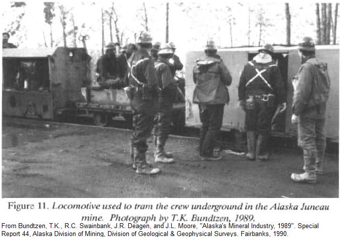 -Various gold mines in the Treadwell group on Douglas Island used small steam locomotives. The earliest ones were shipped there in August of 1888 and in April and June of 1889. Two more were brought in during 1896 and 1897. I’ve also seen references to compressed air locomotives at Douglas as early as 1887. These mostly ran on 25″ gauge track between the various mines and the town of Douglas. A photo of one of these locomotives from 1893 is here: https://saveitforparts.files.wordpress.com/2013/04/treadwell-0-4-0-2.jpg. The only one that might still exist is in Nevada after being used at Funter Bay, but there’s not much documentation on its age or origin.