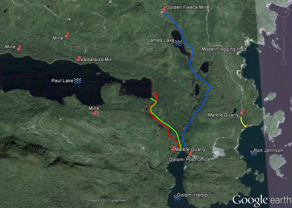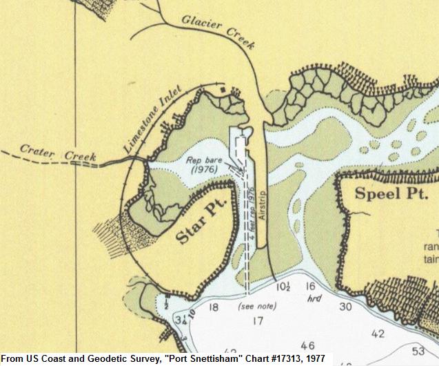 […] and bunkers at Gypsum, Iyoukeen Cove, AlaskaThe old photos show a rail line and train on a long wharf leading to a large bunker in the middle of the cove. From here barges would be loaded with gypsum […]