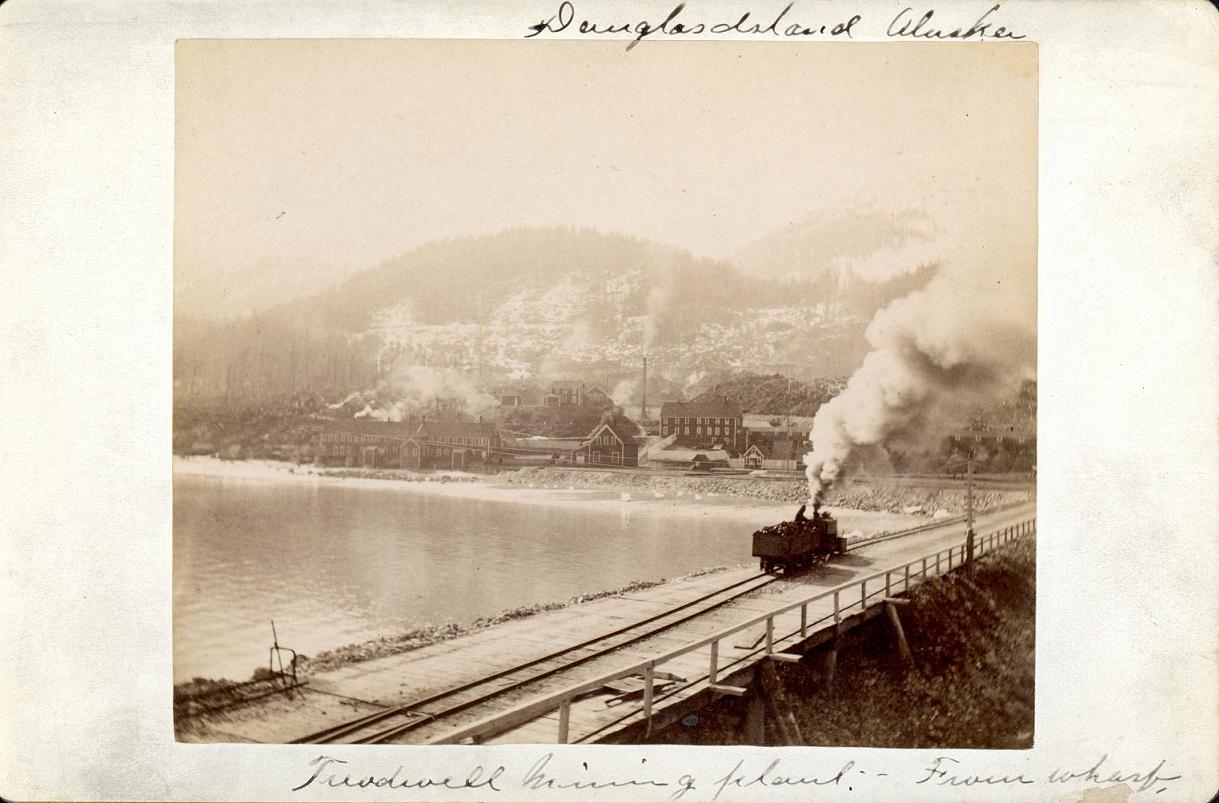 Treadwell Mining Island from Wharf, c. 1891, photograph by the Harrison Brothers. Image courtesy of the Juneau-Douglas City Museum, 2006.38.052.