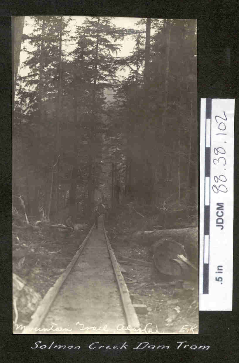 Salmon Creek Dam Trail, c. 1913. Image courtesy of the Juneau-Douglas City Museum, 88.38.102.