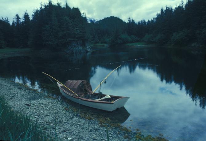 Another interesting fact related to this project: When my Dad first started commercial salmon trolling in Alaska, he built a small hand trolling dory out of plywood. It was barely large enough to sleep in, was powered by a 7.5hp outboard, and eventually made him enough money to buy a larger boat. Here’s a picture of the dory, in what looks like Soapstone cove: