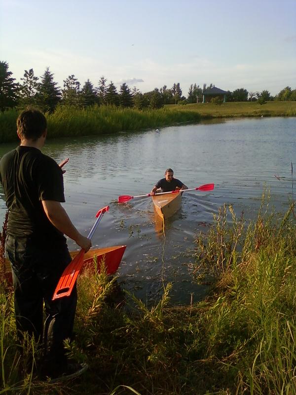 Finally we just went ahead and started slicing up sheets of plywood, our first boat is a little rough, was initially very topheavy before we cut down the freeboard, and is too short for me to fit in.