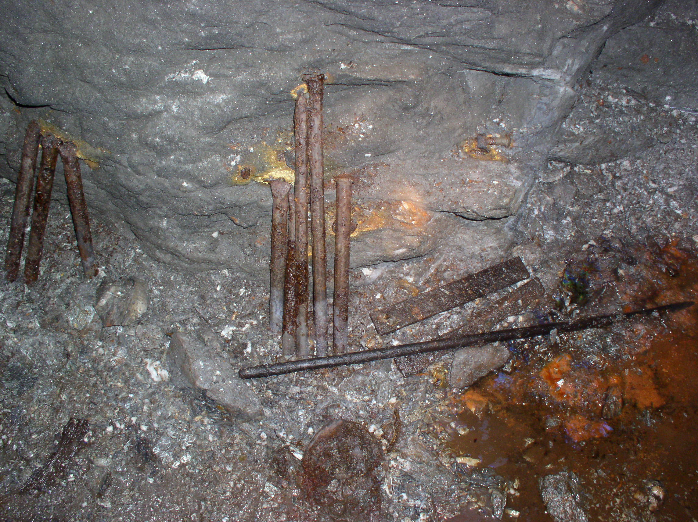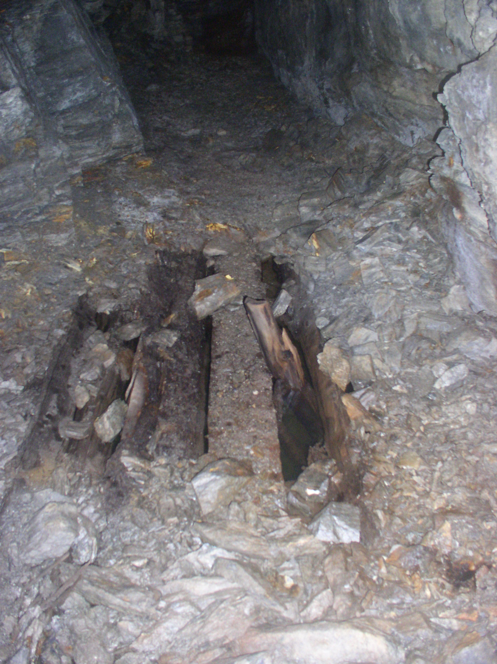 (Note: I do not recommend that you go in any mine workings. They are often dangerous, unstable (as seen below), and many are still private property).