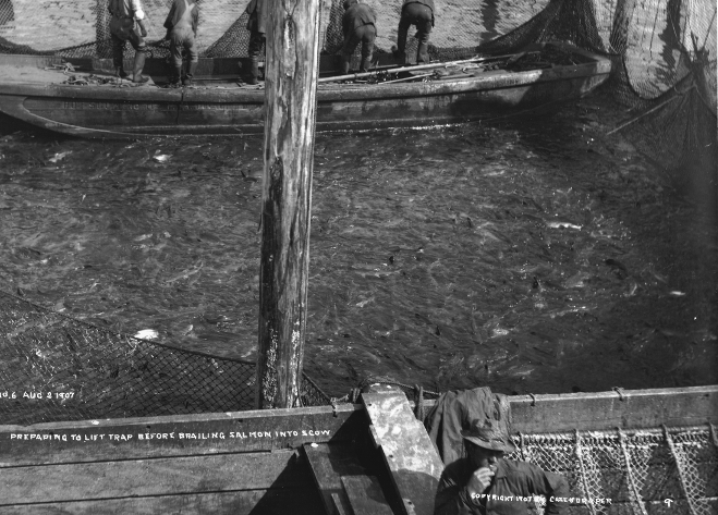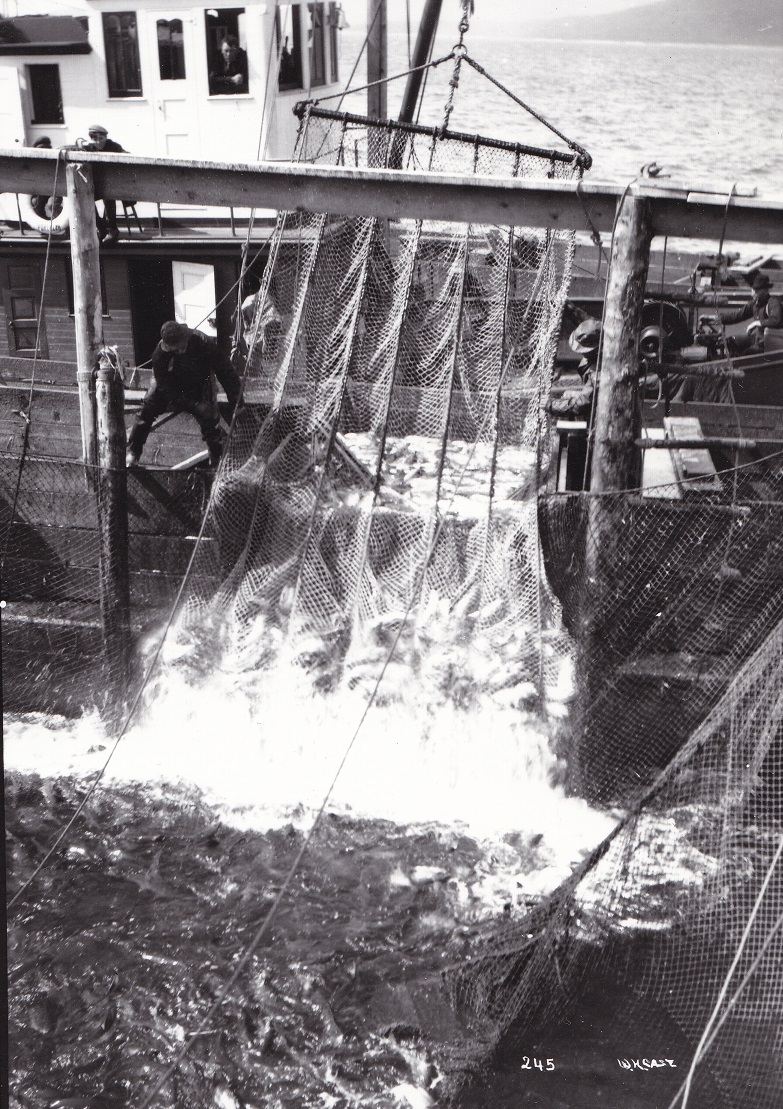 The photos run in a series of 4, going approximately North to South over the West side of the bay. They clearly show the Thlinket Packing Co cannery (owned by Peter Pan Seafoods at the time).