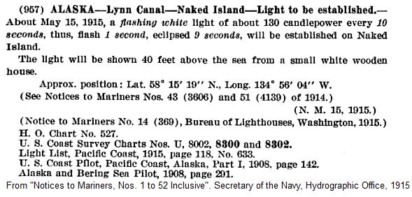 Naked Island Light. Photo from Alaska Shorezone project, used as public domain.