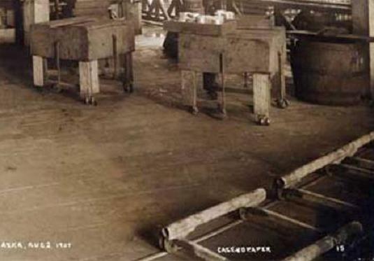 The photo was taken at the corner of the main Thlinket Packing Co warehouse, seen below: