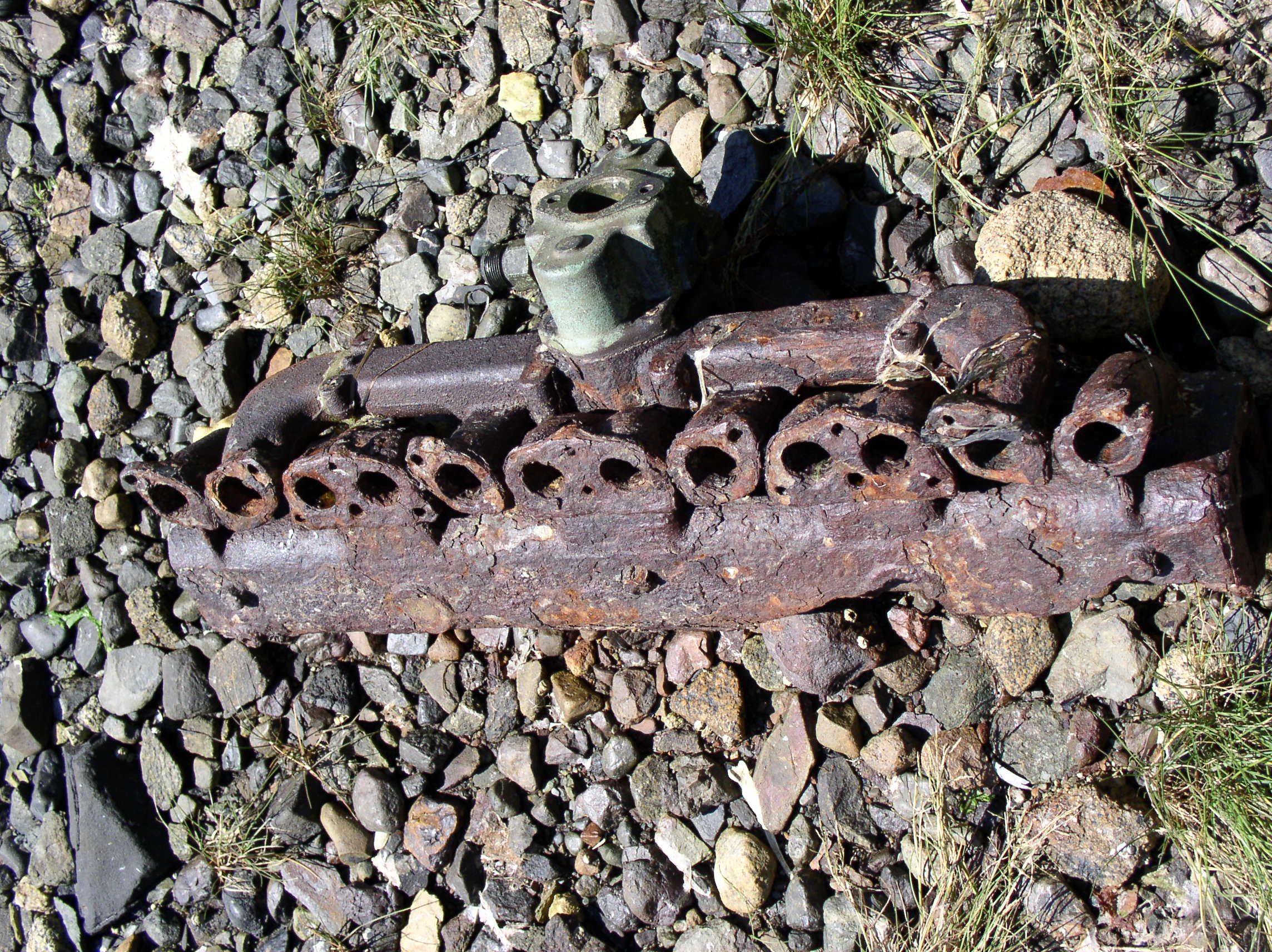 Part of an engine that wandered around the beach in front of our house, occasionally being used as a convenient “big heavy thing” to anchor boats or logs to: