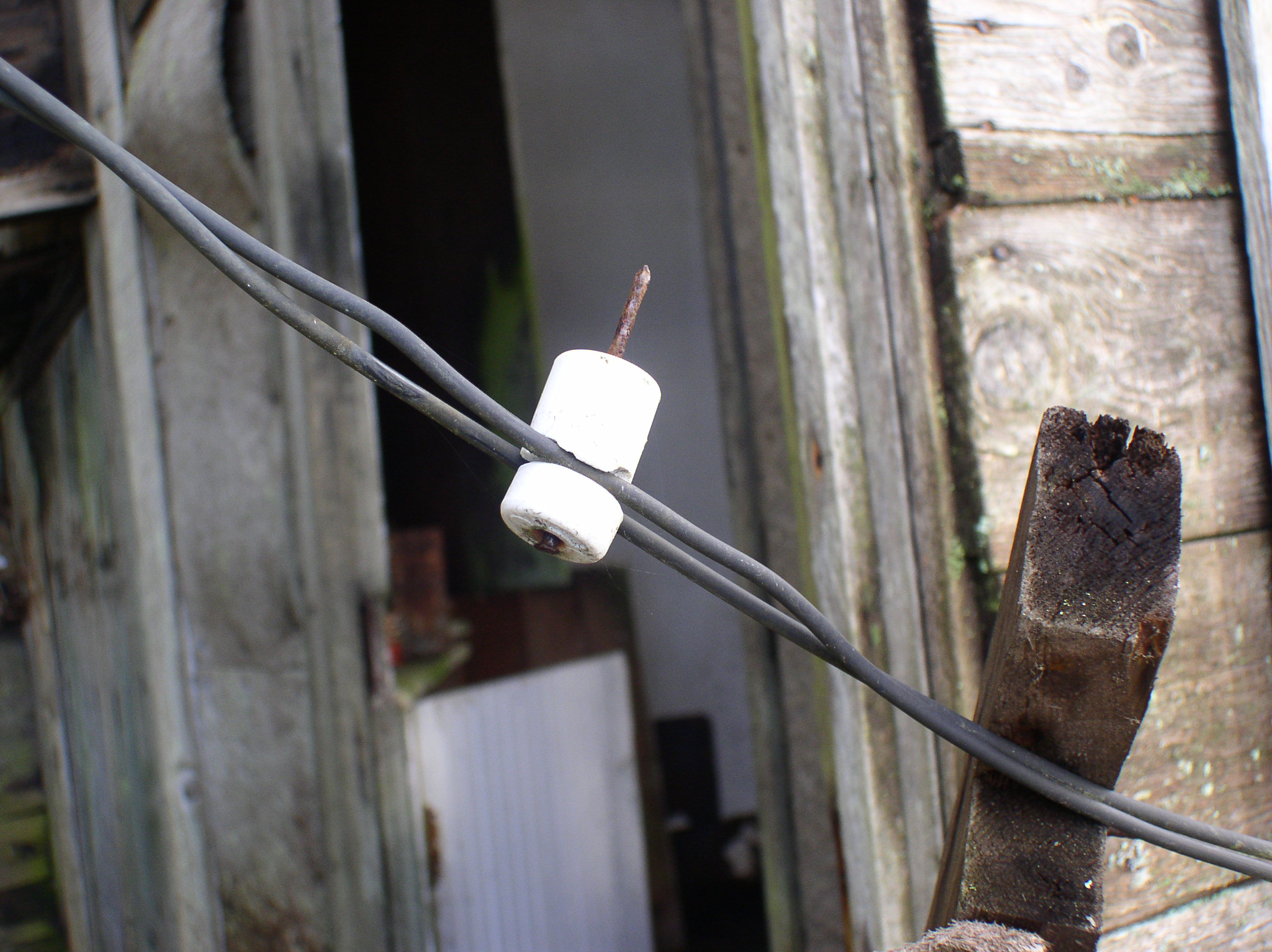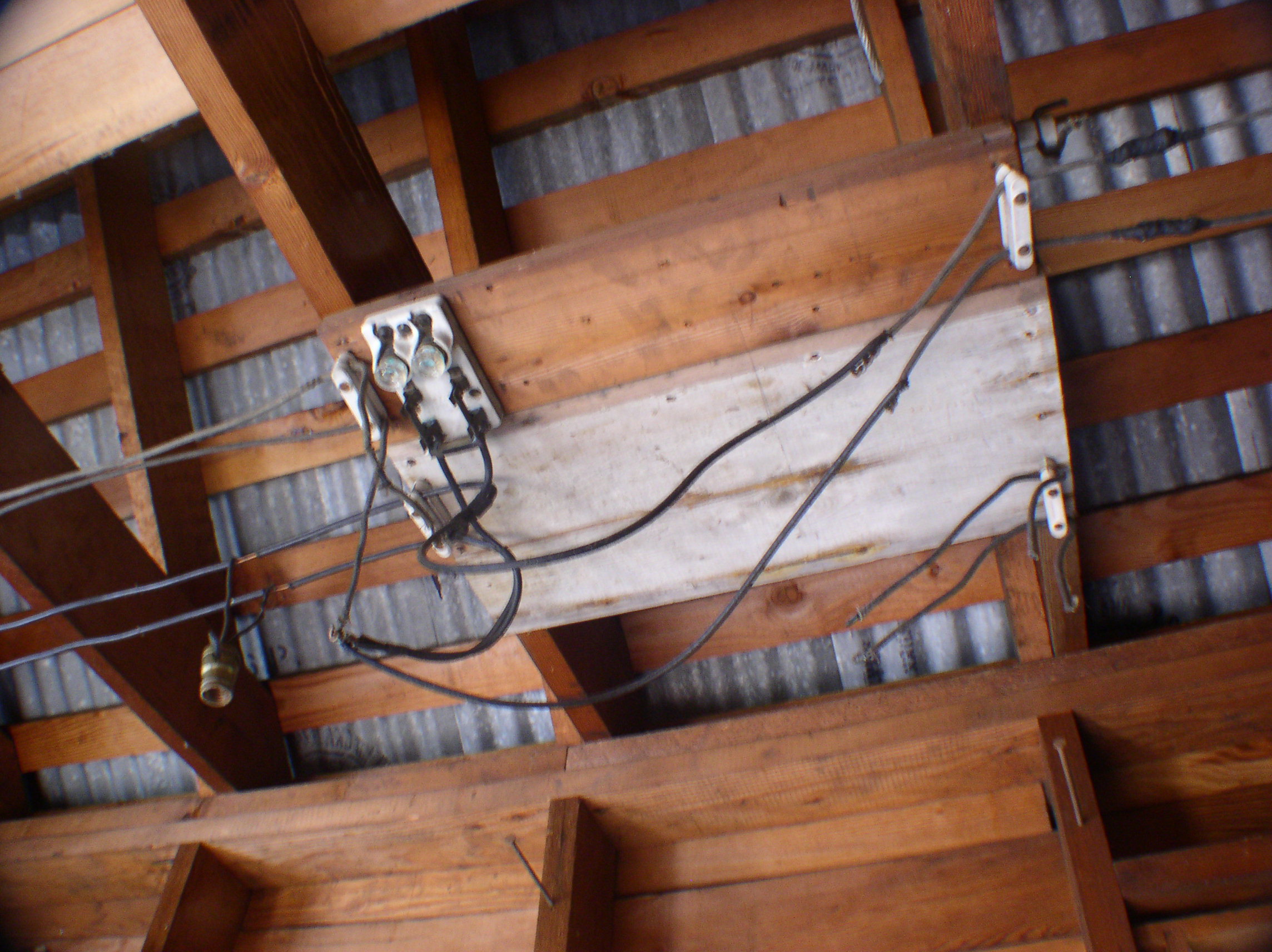 Some 1920s-era knob and tube wiring for lights at the cannery: