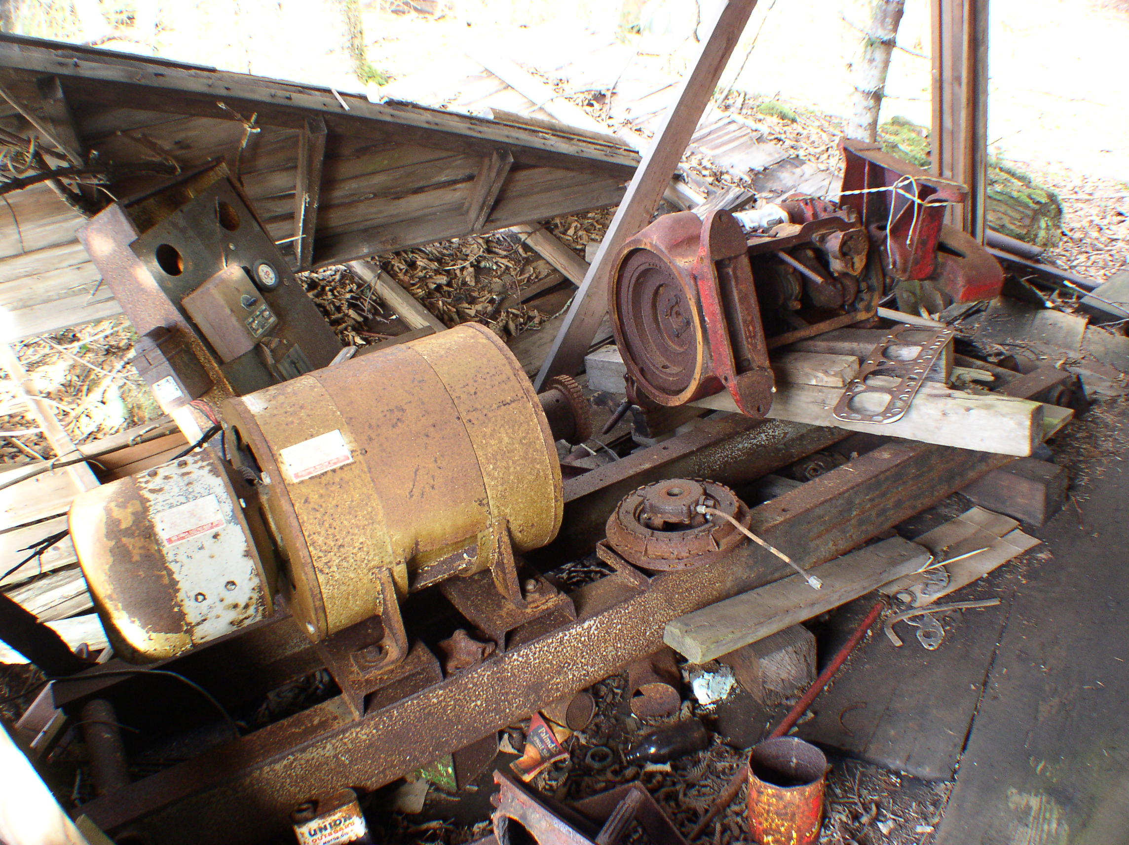 I believe this is part of an International Harvester tractor, retrofitted onto a skid base with a rather massive alternator tacked onto it: