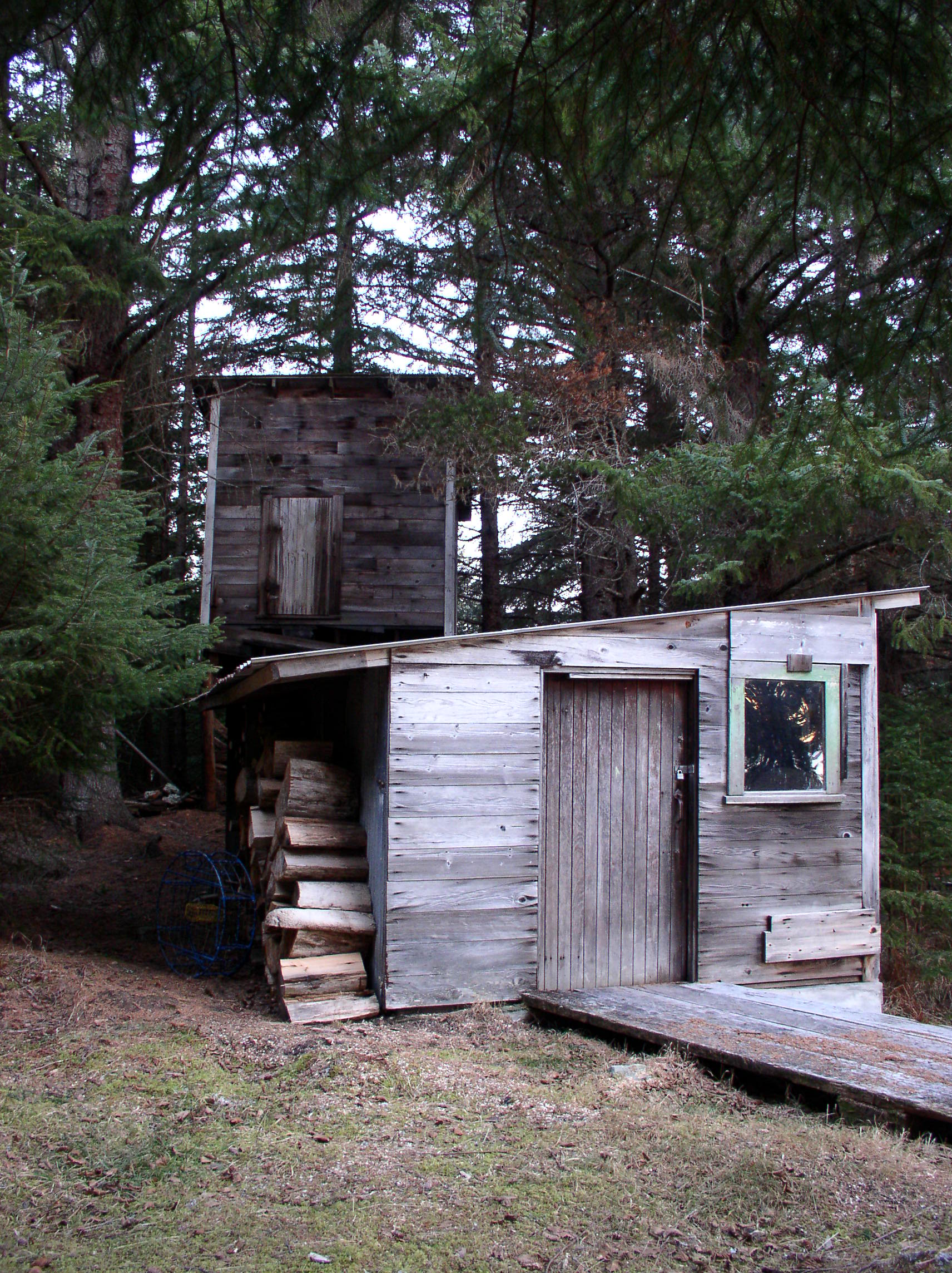 The 1940s-era generator shed at the cannery (with water tower in the background). This was previously the “oil house”. The generator supplied the superintendent’s and caretakers’ houses at the West end of the property, and later supplied some of the boardwalk lighting and lights in other buildings: