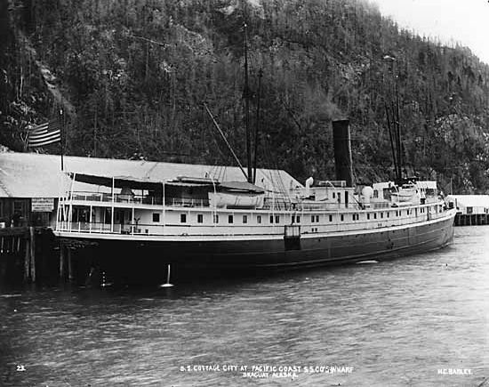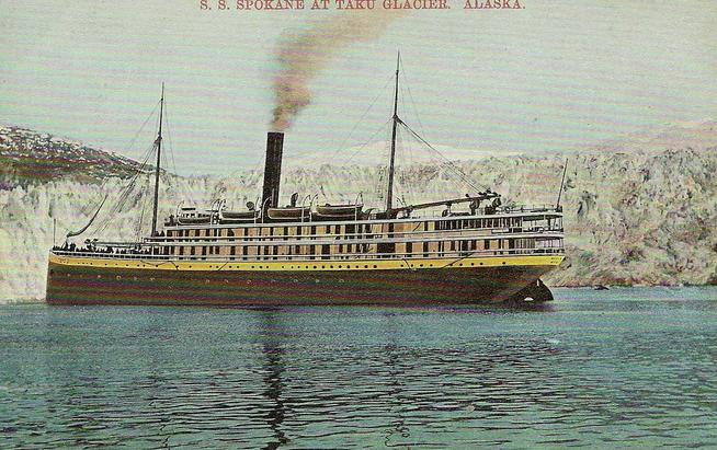 I have this photo floating around my hard drive with the note “SS Spokane at Funter Bay, 1905″. I’m not sure where it came from: