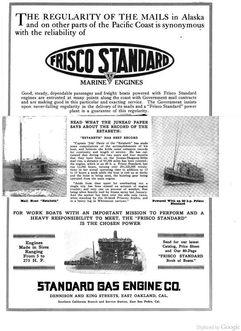Above ad from the 1920 Issue of Pacific Motorboat. In 1920 the Estebeth had a crew of 3.