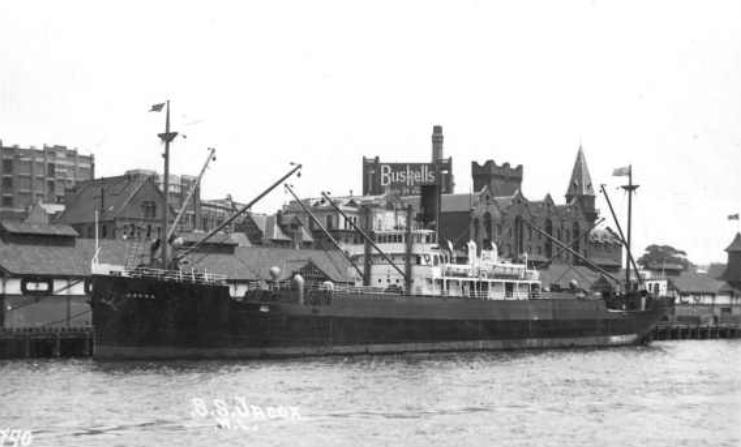 The Nelson Steamship Co of San Francisco owned a 298ft freight steamer named the Jacox, based out of Portland OR. This vessel dropped off supplies and materials at Funter Bay.