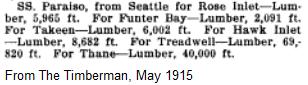And another 1915 sailing mentioned in the Timberman is the freighter SS Paraiso:
