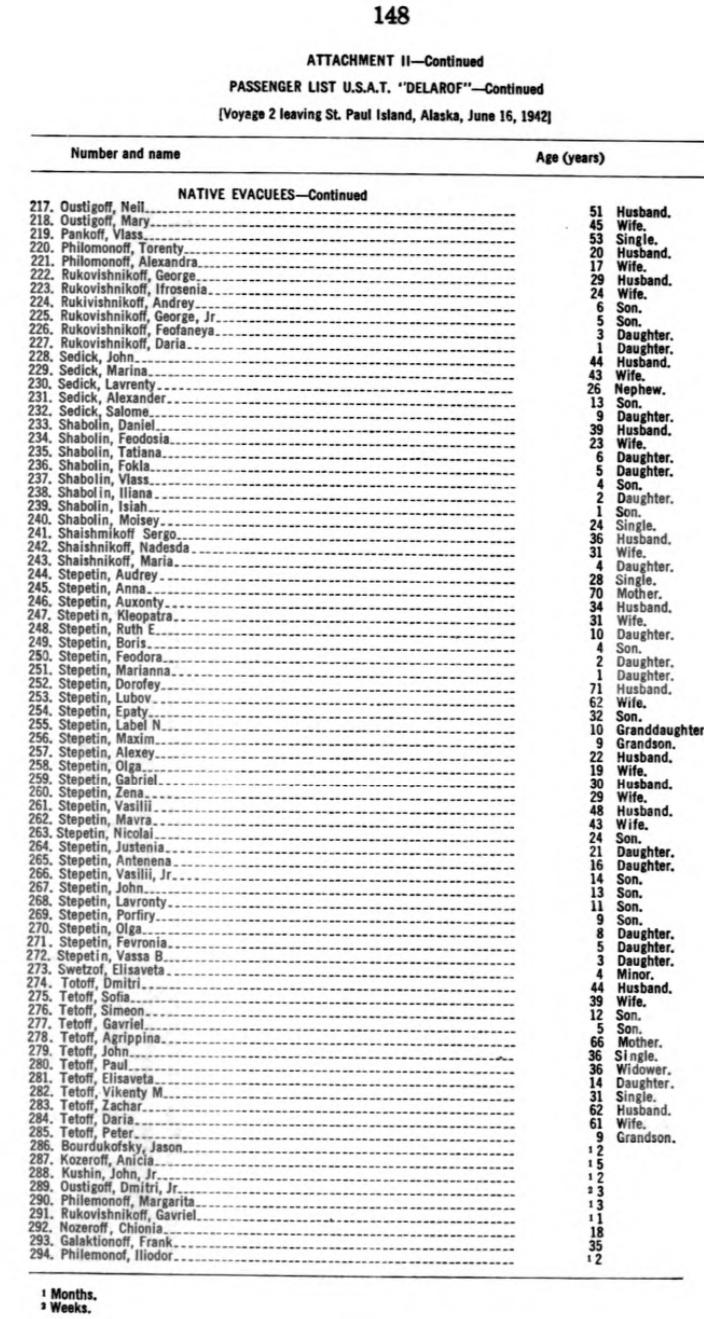 Born 8/26/1921, St. Paul Island, Alaska